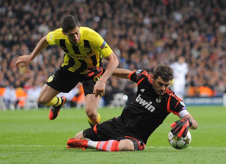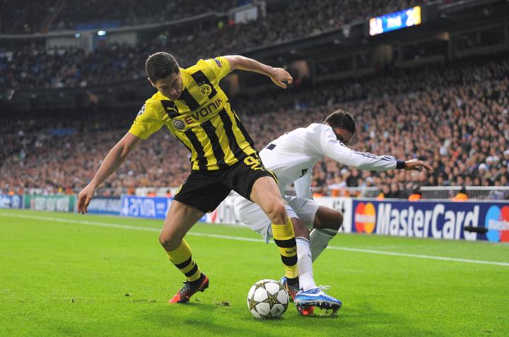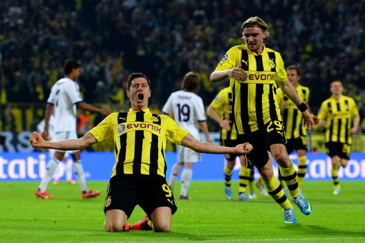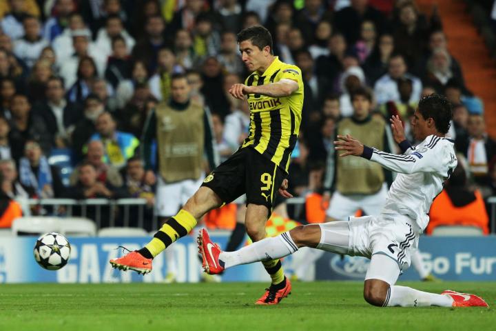 这一次,德国冠军被抽到了一个死亡之组:多特蒙德将与阿贾克斯、曼城和皇家马德里争夺出线名额。在对阿贾克斯的首场比赛中,莱万打进了全场唯一的进球。但这场比赛很容易就会被人遗忘,因为他在10月24日击败了当时世界上最好的门将卡西利亚斯。当莱万被两名防守球员干扰时,他的一记大力攻门让皮球像火箭般窜入了网窝。