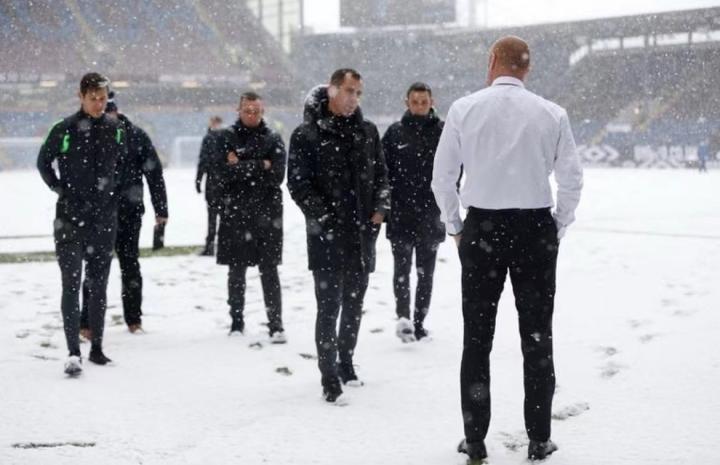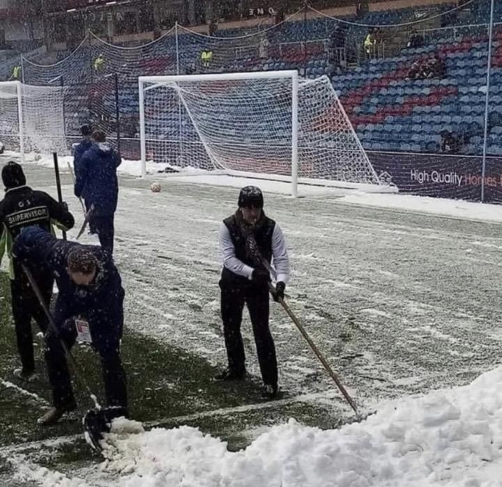 因积雪成堆比赛延期前,伯恩利主席阿兰-佩斯亲自下场扫雪