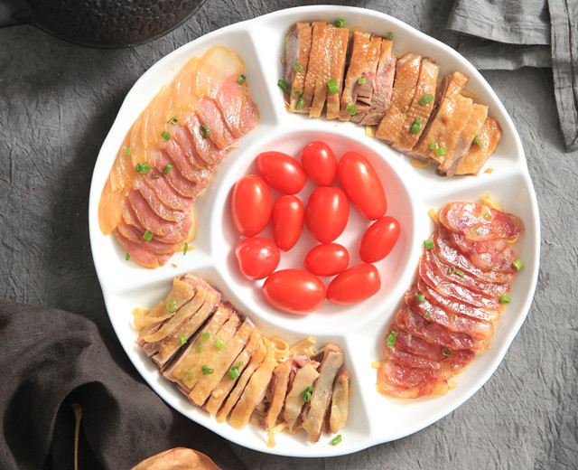 腊肉虽圆润饱满,但失之于腻;腊鱼、腊鸡虽韧劲十足,很有嚼头,却脂肪太少,失之于柴。将这几样配合在一起,正好能互相配合,恰到好处。这样做的好处是各种腊味能互相补充,也避免了只单吃一种,沦于单调的境地。腊鸡吸收了腊肉的肥油,变得更加饱满;腊肉因为减淡了油腻,也立时清爽许多。中间再加上清口水果,简直不要太好了。