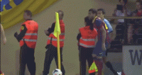2014年4月28日,巴萨客场挑战比利亚雷亚尔的比赛中,巴萨球员阿尔维斯在发角球的时候,比利亚球迷扔下一根香蕉,落在了他的脚边,阿尔维斯看到后,若无其事地捡起香蕉,剥皮吃掉,然后继续开角球。