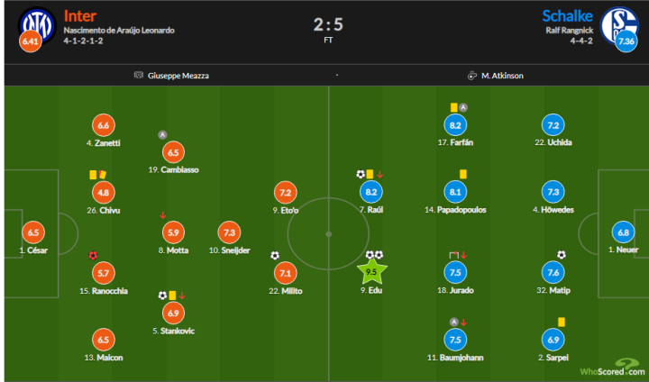 再放一张图,朗尼克执教时期的代表之作,2011年欧冠客场5-2战胜卫冕冠军国际米兰,该场比赛用的就是经典的442平行阵型。