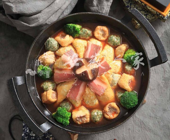 最关键的做法也不同于常规的餐厅。为保证菜品的色泽和口感,安徽人家的大厨在烹制时用,选用生铁锅,先将红绕肉煸炒后烧至半熟,再依次将荤素菜肴铺入锅内,加入汤汁,以旺火煮沸,再以文火慢炖,并不时舀其汤汁浇于锅面,使原汁让原材料充分吸收,加热至两到三小时,待汤汁快干,菜酥烂、味浓醇才可装盘。