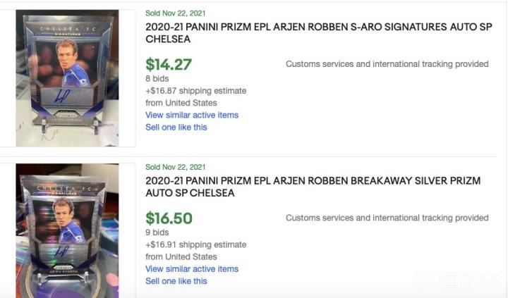 这些是最近成交的价格。并不是大家所认为的,球星卡签字需要花成千上万的价格。像几十,一两百的签字卡也有很多,像罗本这样的球星,签字也刚刚过百而已。