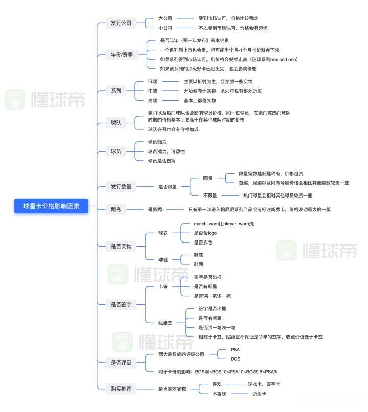 今天我带大家了解一下到底有哪些因素会导致球星卡价格发生波动,这里是我给大家梳理了一张图,帮助大家更好的理解。