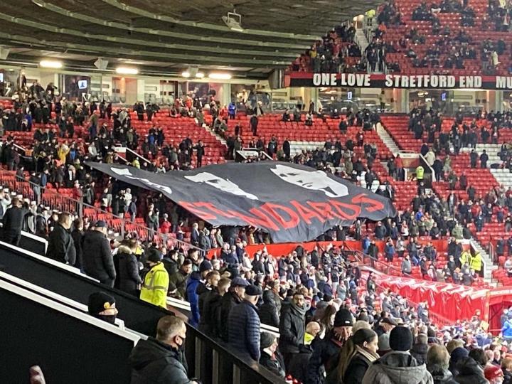 给马奎尔看看?老特拉福德看台出现曼联功勋队长们的TIFO天青色等烟雨__ @懂球帝2021-12-03 04:12英超第14轮,曼联坐镇主场迎战阿森纳,老特拉福德看台上出现曼联三名功勋队长的TIFO。出现在TIFO的三人分别是布莱恩-罗布森、罗伊-基恩和坎通纳,他们都是曼联队史有名的功勋队长,并且TIFO上配的文字是:模范们(STANDARDS)。目前,担任曼联队长的是后卫马奎尔,本赛季以来,曼联队长的表现一直不如人意,本轮对阵阿森纳刚刚回归的他首发上场。展开更多