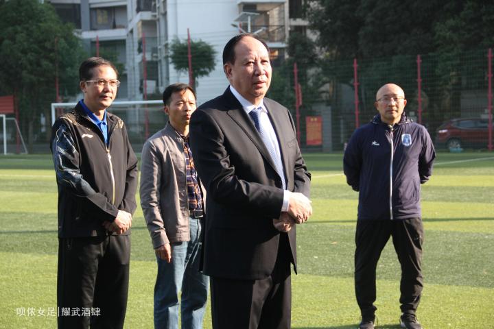 (广西足协主席谢强鼓励姑娘们打出广西足球的风采)