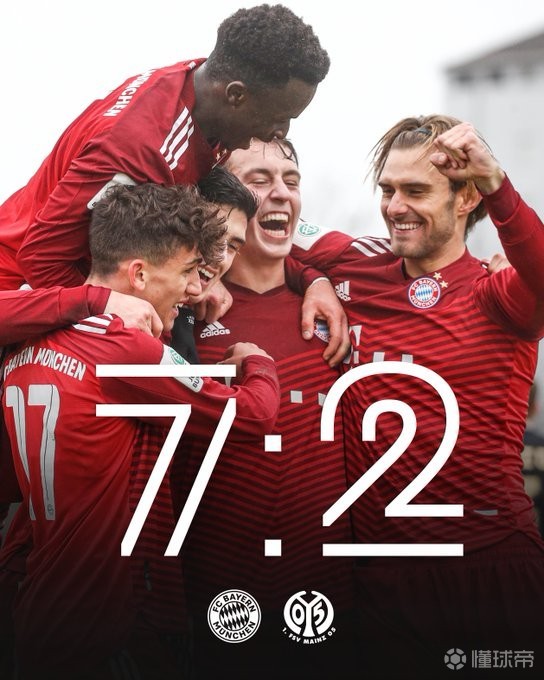 拜仁U19梯队7-2美因茨U19,马梅多瓦上演帽子戏法阿漂 @懂球帝2021-12-04 20:18今天早些时候,拜仁U19在青年赛事中7-2大胜美因茨U19。本场比赛,马梅多瓦上演帽子戏法,万纳、黑罗尔德、埃塔梅和内齐里各有一球进账。展开更多