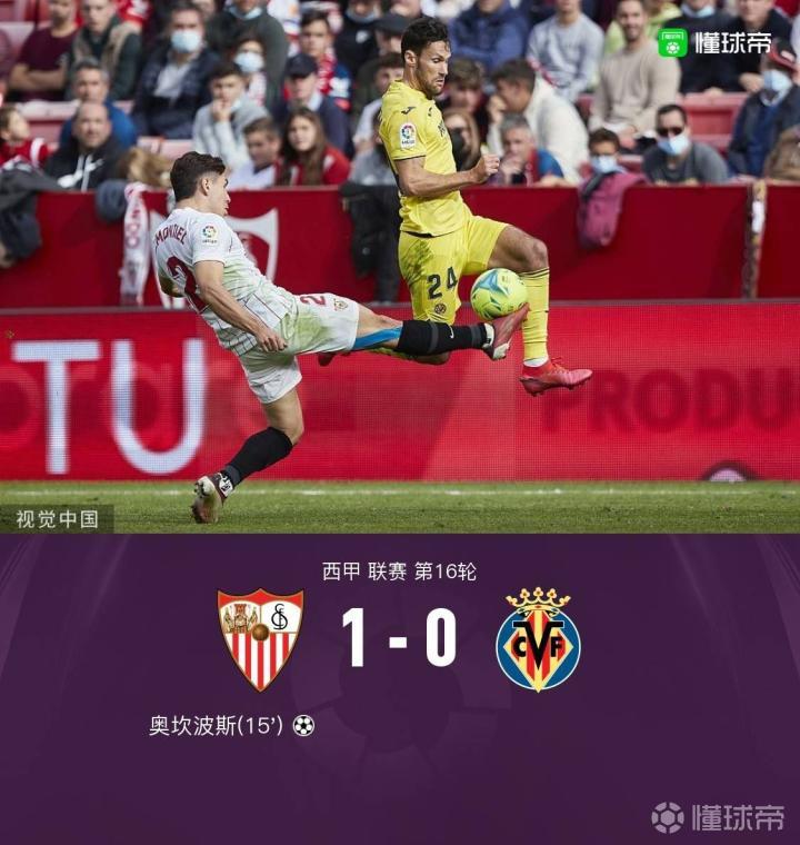 塞维利亚1-0比利亚雷亚尔,奥坎波斯头槌制胜,米尔进球被吹