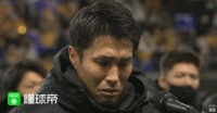 ↑赛后,队长岩尾宪向球迷致谢后难掩泪水。