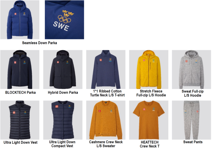 2022北京冬奥会和冬残奥会瑞典代表队系列服装 图源:UNIQLO