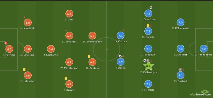 而国米这边,仍然保持着出色的人员轮换,巴斯托尼出战顶替迪马尔科,上轮轮休的巴雷拉重新出现在了首发名单当中,因为赛前出现了一些小问题,劳塔罗没有先发出场,他的同胞华金·科雷亚连续三场比赛获得首发的机会。