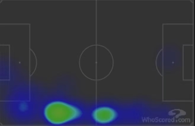 这是伊巴涅斯本场比赛的活动热点图,基本上集中在本方半场,对进攻的支援力度十分有限,更多的情况下,是17号韦勒图在”代替“伊巴涅斯的进攻职能。