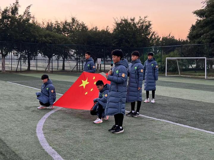 昨天晚间,05、06梯队达到恒大足校,与07A、B队汇合,冬训队伍正式完成集结。每周一早上是学院例行升旗仪式的日子,为实现五星标准中爱国主义与集体主义教育,升国旗、奏国歌是其重要内容 。