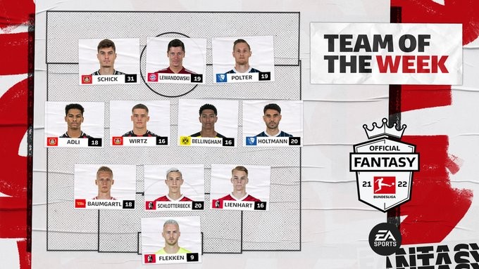 德甲第14轮最佳阵容:莱万、希克领衔,维尔茨、贝林厄姆入选