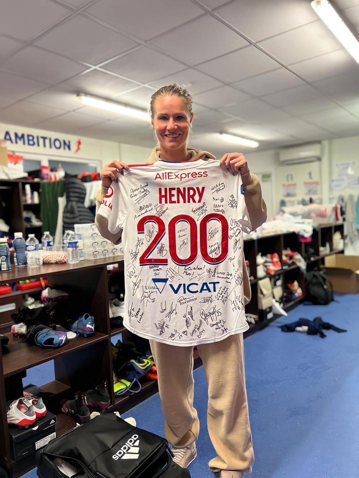 在4-0战胜弗勒里女足的比赛中,32岁的法国国脚阿芒迪娜-亨利迎来了代表里昂女足参加的第200场女足法甲联赛,她也通过社媒展示了签满字的里程碑纪念球衣。(信息来源:里昂俱乐部官网 https://www.ol.fr/fr-fr/contenus/articles/2021/12/06/200e-match-en-d1-arkema-pour-amandine-henry)