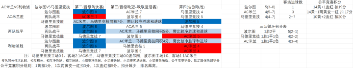 2.AC米兰晋级淘汰赛只有两种可能,要么就是自己击败利物浦的同时,波尔图和马竞战平;要么就是和马德里竞技同分且马德里竞技不在客场进波尔图超过两个球,而且AC米兰的公平竞赛积分超过马竞。