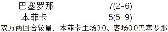 后天4时,巴塞罗那作客安联球场面对拜仁,本菲卡主场对阵基辅迪纳摩。由于本菲卡对阵巴塞罗那1胜1平占据优势,因此巴塞罗那必须取胜才能稳稳晋级,否则一旦不胜而本菲卡胜出,那么本菲卡将晋级。
