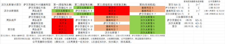 后天4时,沃尔夫斯堡主场迎战里尔,塞维利亚远征奥地利挑战萨尔茨堡红牛。最极端的情况是出现三队同分。里尔对阵塞维利亚1胜1平,因此若两队同分则里尔排名高于塞维利亚;里尔和萨尔茨堡红牛已不可能同分;里尔首回合主场0:0与狼堡打平;塞维利亚首回合主场1:1打平萨尔茨堡;塞维利亚对沃尔夫斯堡1胜1平,因此两队同分时,狼堡排名低于塞维利亚;萨尔茨堡对狼堡1胜1负且两回合打成3:3,因此当两队同分时,应在小组中进行各项比较。晋级形势尽在这张表里: