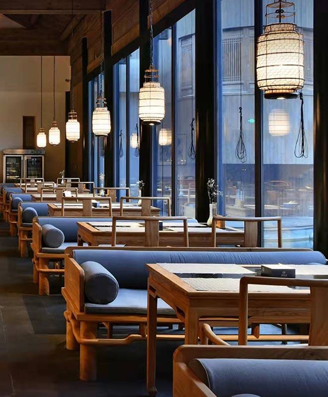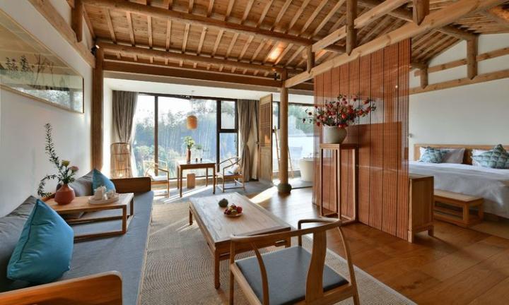 客房设计根据朝向院景的不同,窗户设计也不一样。有洒满阳光的落地窗,清晨醒来,拉开窗帘就是如画的美景;或精致的格子木窗,清晨的阳光从木格的缝隙间挤进来,在地面落下斑驳的光影。