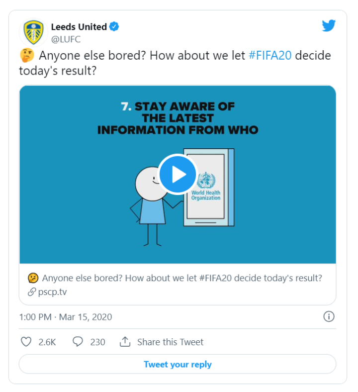 “还有人也觉得无聊吗?”约克俱乐部当天上午在推特上发言,“我们用#FIFA20来决定今天的结果如何?”