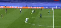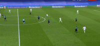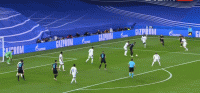 开场后,双方都在利用中前场逼抢试探对手,对抗和拼抢比较激烈。为了摆脱对手的纠缠,国米很会利用阵型结构上的优势。约维奇对布罗佐维奇疏于管控,莫德里奇和克罗斯要留意处于肋部的持球人,皇马的高位压迫对不上点。后场中路多出一名球员,国米可以轻松发动长传,给边翼卫创造一对一机会。