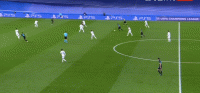 首回合较量,国米主攻右路,安切洛蒂要求“尖刀”维尼修斯深度退守,以4-5-1/5-4-1站位抵御对手的攻势,这样做牺牲了进攻。此役,国米由佩里西奇主攻,皇马在右路防区设有重兵,卡塞米罗和莫德里奇都会帮助卡瓦哈尔防守,罗德里戈多次退守到右后卫位置。