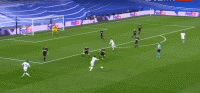 (图)布罗佐维奇无人管控,国米轻松组织进攻。罗德里戈既要顾及身后,又要留意中路,皇马防线宽度不足,只能被动地向禁区内收缩。