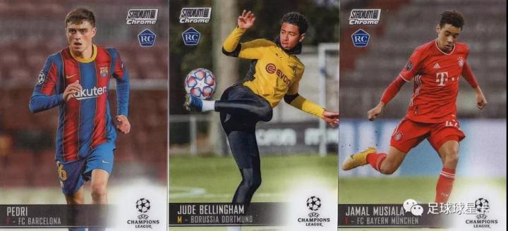 佩德里、贝林汉姆、穆夏拉这三位在今年各项新人排名中稳居前三的金童,是卡圈中炙手可热的热门人物,也大受组队开卡群体的追捧,他们在今年已发行的球星卡中都带有RC标志