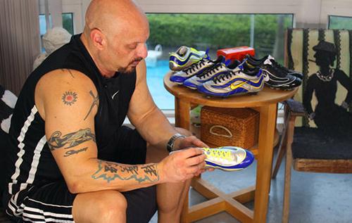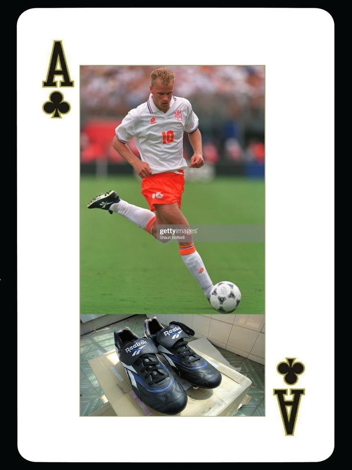 除了设计integrity这个经典的系列,tresser在当时还负责为reebok签约的几位大牌球星设计球鞋。1993,锐步签约了荷兰冰人博格坎普,当时他的世界足球先生和金球奖的第三名,可谓如日中天,tresser为冰王子设计一款加入了深蓝色国米元素的球鞋,博格坎普穿着这款鞋参加了1994年世界杯,并且把这双鞋还穿到了阿森纳,博格坎普是个比较怀旧的人,他此后一直在阿森纳效力10多年,直到退役,他的球鞋也一直锐步赞助的,没有换过。所以他阿森纳时期所有的经典进球都是穿着reebok球鞋打入的。