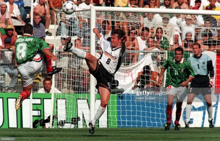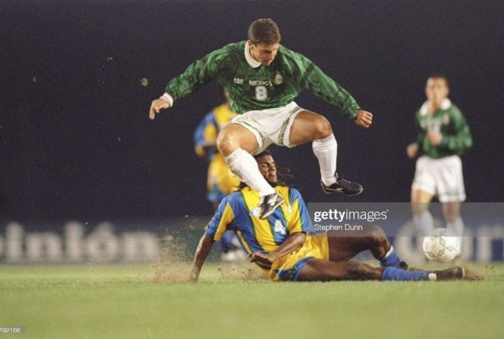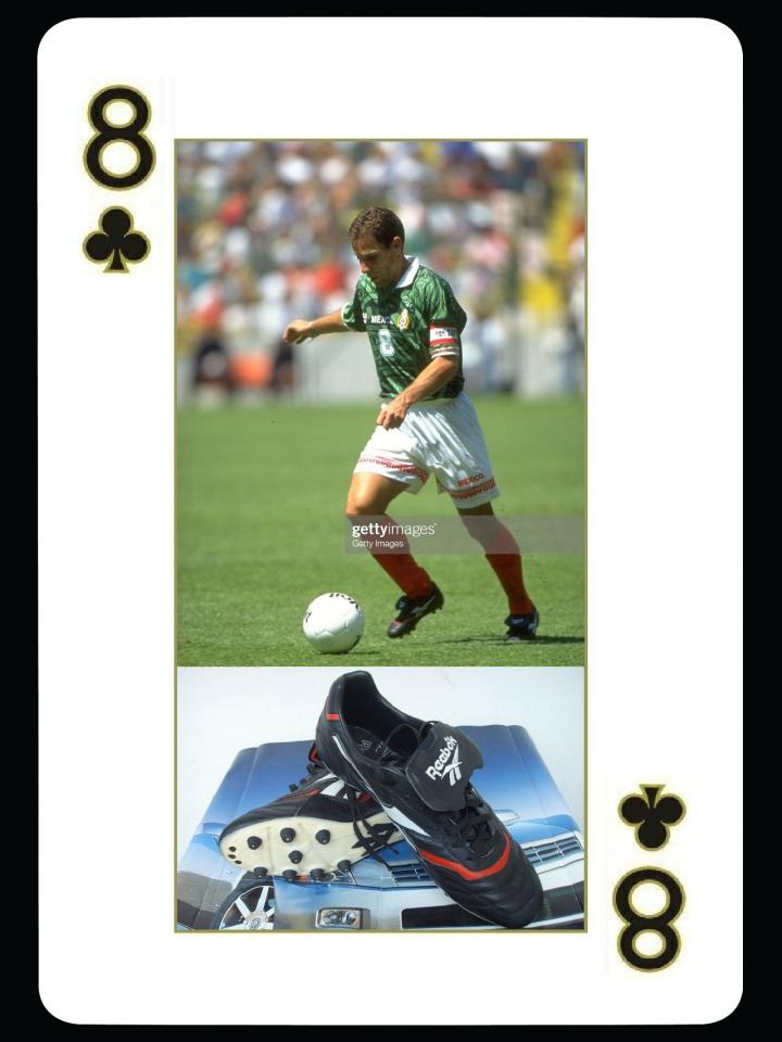 和博格坎普的球鞋同时发布的还有一双吉格斯专属的球鞋,叫giggs pro。这款球鞋是为吉格斯设计,所以用的黑红色曼联元素。但也有其他球员使用,90年代墨西哥传奇队长阿斯佩,就喜欢穿这款球鞋,当然吉格斯的球鞋有些定制,阿斯佩的是量产,这位墨西哥中场不苟言笑,踢球一板一眼,他是队中的老大哥。1998年世界杯,虽然墨西哥队有布兰科,埃尔南德斯这样非常抢眼的球星,但球队真正的精神领袖是阿斯佩,他还在2001年带领墨西哥杀入过美洲杯决赛。
