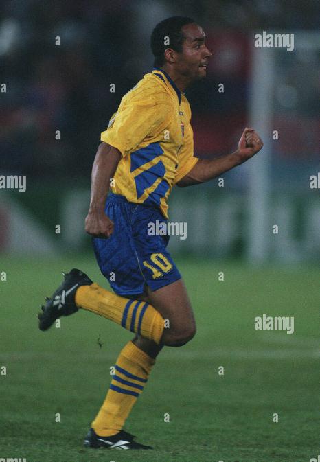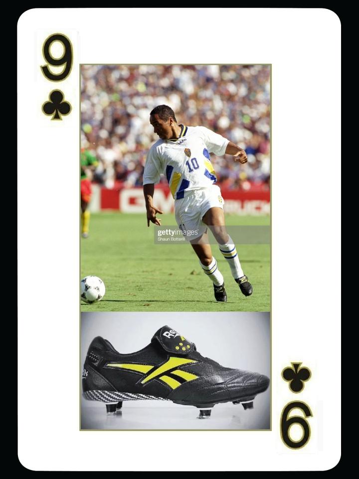 1994年世界杯,tresser还设计过一款非常特别的球鞋,这双鞋是为哥伦比亚金毛狮王巴尔德拉马设计的,所以用的是哥伦比亚的黄色元素,这款鞋叫Insta pump,鞋底用了碳板,鞋面还有pump,不过巴尔德拉马在1995年签约了茵宝。1994年瑞典队的黑人前锋达赫林大放异彩,在世界杯上打入四个进球,他当时也刚刚签约了锐步,当时他效力俱乐部,门兴格拉德巴赫也是锐步赞助的,1995年获得过德国杯冠军。在离开门兴后,达赫林来到英超布莱克本效力了两个赛季,后来因为伤病在31岁就退役了,如今他是北欧著名的足球经纪人。