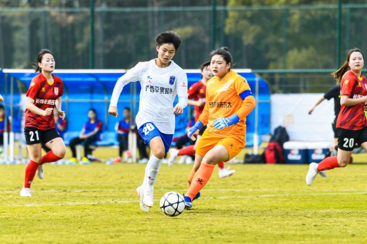 女乙:广西平果呗侬将对阵北京国安首体,海南琼中女足对阵上海海港同济大学,8强产生 12月10日,女乙联赛小组赛全部收官,广西平果呗侬、海南琼中女足、武汉体院女足、广东富力安华、赣南师范大学、北京国安首体、内蒙古大学、闯入八强。14:30,福建漳州欢乐岛足球基地,C组收官战,海南琼中女足对阵云南农业大学,陈婉婷排出3412切换343的阵型,提前出线的琼中女足轮换多名主力球员,李琳担任队长。云南农业大学5号党银帆第7分钟先入一球,1-0,云南农大让人意外的取得领先。琼中女足迅速反攻并掌握比赛主动,第14分钟8号赵童进球扳平比分,随后琼中本土小将11号王敏慧上演帽子戏法,赵童梅开二度,3号黄文丽打入两球、张倩、杨静、王杰、王秀楠、黄巧祥各得一分,最终海南琼中女足11-1击败云南农业大学,小组三连胜进27球失1球,被称为“国家二队”的她们展示恐怖攻击实力,排名小组第一强势进入八强。C组另外一场比赛,广西师范大学对阵内蒙古大学争夺出线权,内蒙古大学的7号屈嘉利第8分钟进球取得梦幻开局,10号李娜第27分钟扩大比分为2-0,广西师范大学身高力量处于劣势且体能不足,但顽强拼搏到最后一分钟遗憾落败,最终内蒙古大学2-0击败广西师范大学,排名小组第二闯入8强。14:30,B组收官战,广东富力安华对阵山东泰山曲师大,提前出线的广东富力安华也轮换多名主力球员依然掌握比赛节奏,广东富力16号廖诗梦第5分钟取得进球,曲师大15号马安佳第10分钟扳平比分,随后广东30号陈竹炳第35分钟再度反超为2-1,随后广东的9号梁金艳、31号邱欢喜、12号吴海源连续取得进球,最终广东富力安华5-1击败山东泰山曲师大,三连胜进12球失2球排名小组第一进入八强。B组另外一场比赛,上海海港同济大学对阵浙江大学争夺出线权,双方鏖战90分钟打成0-0,最终上海海港同济大学凭借净胜球优势力压浙江大学,排名小组第二闯入8强。10点D组收官战,广西平果呗侬女足对阵云南农业大学,双方都轮换大量球员,广西平果呗侬的26号广西姑娘朱慧敏首发登场。平果呗侬占据比赛主动,第2分钟就由7号周蕾首开纪录、第11分钟平果13号张妮破门打成2-0,随后平果呗侬的9号高中锋吴思澄上演帽子戏法,广西姑娘朱慧敏打满全场,有极具威胁的得分机会,最终广西平果呗侬女足5-0击败云南农业大学,广西平果呗侬女足3战全胜进12球0失球,积9分小组头名昂首出线,平果呗侬也是到目前为止16支球队唯一保持零失球的队伍。D组另外一场比赛,赣南师范大学1-0安师大佳兆业,第64分钟赣师大的11号高文慧攻入制胜球。赣南师范大学积6分小组第二出线,与广西平果呗侬携手闯入八强。10点A组的收官战,武汉体院女足3-0沧州雄狮河地大,第7分钟武汉体院就凭借对方的乌龙球取得领先,第18分钟12号周洋进球,上半场补时阶段11号汪倩倩攻入第三球。A组另外一场比赛,北京国安首体3-1击败山西师范大学,北京国安首体的38号王钰莹、3号游璟华、19号杜文萱先后破门,山西师范大学9号宋丽艳打入挽回颜面的进球,武汉体院女足三战全胜排名小组第一,北京国安首体小组第二,双双闯入八强。 12月13日的对阵形势: 1-8名排位赛 10:00 海南琼中女足VS上海海港同济大学 广东富力安华VS内蒙古大学 14:30 武汉体育学院 VS 赣南师范大学 广西平果呗侬VS 北京国安首体院 9-16名排位赛 10:00 云南农业大学VS浙江大学 山东泰山曲师大VS广西师范大学 14:30 沧州雄狮河地大 VS 长春亚泰吉农大 安师大佳兆业女足VS山西师范大学 12月10日比分 A组 武汉体院女足3-0沧州雄狮河地大 北京国安首体院3-1击败山西师范大学 B组 上海海港同济大学0-0浙江大学 广东富力安华5-1山东泰山曲师大 C组 海南琼中女足11-1云南农业大学 内蒙古大学2-0击败广西师范大学 D组 广西平果呗侬女足5-0击败云南农业大学 赣南师范大学1-0安师大佳兆业 本轮“CUFA大足联赛”“中国女足”微博全程关注本次比赛,敬请大家关注女乙联赛,给女足姑娘们打call! (资料据自、鸣谢:广西平果呗侬女足、广西师范大学女足、广西体育局、广西平果哈嘹足球俱乐部、中国女足官微、CUFA官微、耀素材、我是球星、小球迷、黄智,整理编辑:耀武酒肆工作室、同道南方)耀武酒肆工作室,相信影像的力量,专注记录广西足球15年!