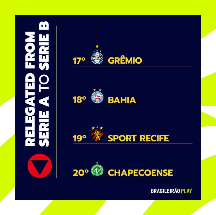 虽然竞争激烈,但格雷米奥的降级过程实在不太体面,从第1轮到第38轮,它就没出过降级区。格雷米奥赛季初先后流失佩佩和马特乌斯-恩里克两员前场大将,从欧洲回乡的狗剩没能扛起重任,甚至成为整个球队的桎梏。休赛期严重准备不足致使格雷米奥在赛季初就陷入连败的深渊,前期挖下的大坑让后续的填坑之旅极其艰难,包括斯科拉里在内的3任主帅都没能挽回败局。尽管赛季后期老将索萨和边锋费雷拉挺身而出,但最终没能创造奇迹,只能接受降级的命运。