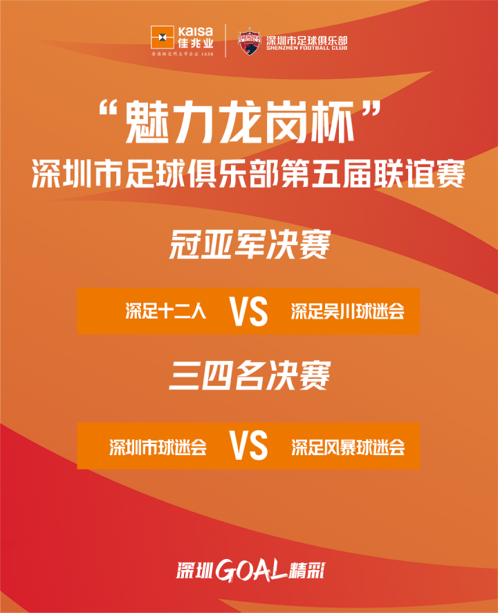 深圳市足球俱乐部12月8日,“魅力龙岗杯”深圳市足球俱乐部第五届球迷联谊赛进行了半决赛,深足十二人点球大战2比0击败深圳市球迷会,闯入决赛;深足吴川球迷会4比1战胜深足风暴球迷会,也获得决赛门票。