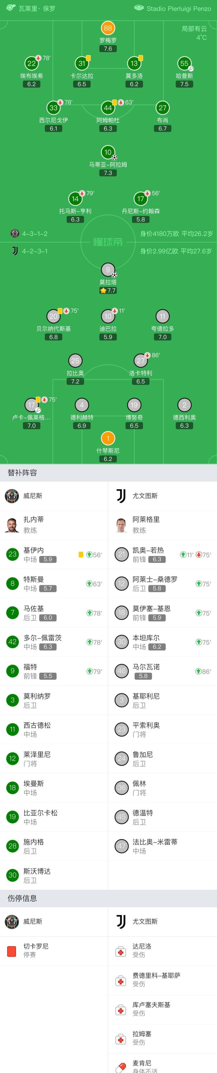 剑南春丨意甲战报:尤文客场1-1遭威尼斯逼平,迪巴拉伤退