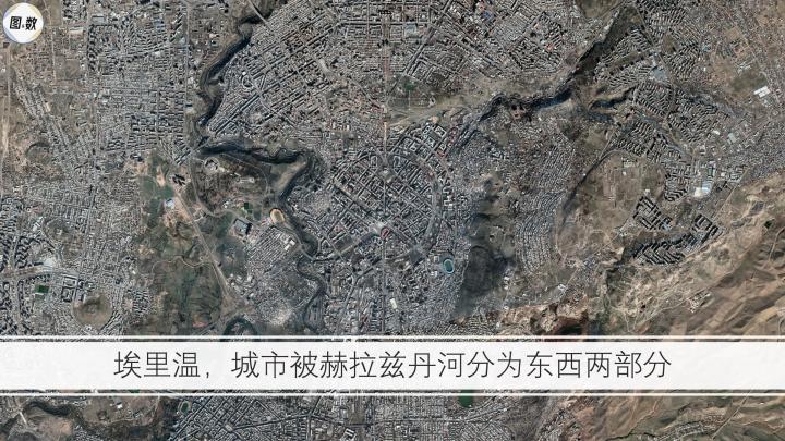 首都埃里温也是亚美尼亚第一大城市,人口超过100万,约占全国的三分之一。这座地处亚米尼亚高原的城市,平均海拔接近1000米,山丘和河流的分割使得城市布局呈现出“同心圆”+“多核心”的混合模式。