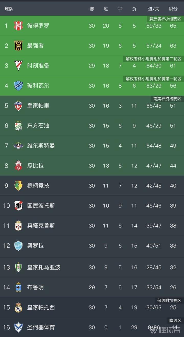 2021赛季玻利维亚足球甲级联赛落幕,升班马彼得罗罗上演凯泽斯劳滕奇迹,他们力压上赛季冠亚军获得队史第一个联赛冠军。 上赛季亚军最强者开局十分理想,卫冕冠军阿拉维准备则受到双线作战的影响,开局并不顺利。在解放者杯出局后,阿拉维准备开始发力,他们连赢9场与最强者并驾齐驱,而彼得罗罗在身后紧追不舍。随着最强者和阿拉维准备状态下滑,在最后一轮之前彼得罗罗已经杀到第二,距离榜首最强者只差1分。去年最强者就是因为收官战掉链子结果以1分之差屈居第二,但是他们今年显然没有吸取教训,最后一轮不敌圣克鲁斯,将冠军拱手让给赢球的彼得罗罗。连续两年最后掉链子送给对手队史首冠,在心态方面,最强者真的是最弱者啊。 值得一提的是,倒数第一圣何塞体育整赛季进9球狂丢96球,30轮就平了1场,输29场。而他们唯一一场平局,对手是皇马的弟弟皇家帕托西。 玻利甲夺冠排行榜,玻利瓦尔28冠排第1,威斯特曼15冠排第2,最强者13冠排第3。 玻利维亚还没有球队获得过解放者杯冠军。