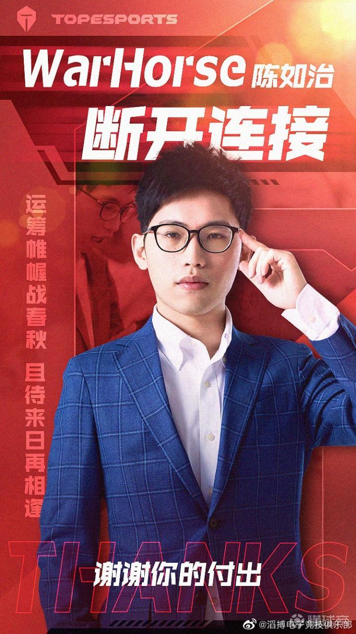 滔搏电子竞技俱乐部英雄联盟分部的主教练陈如治(ID:WarHorse)卸任主教练一职。