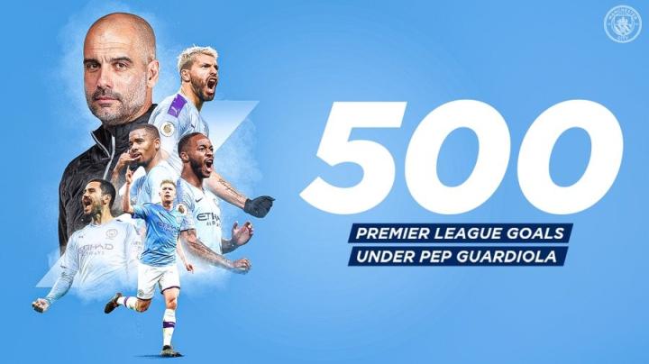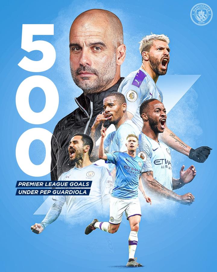 瓜帅成英超达成500球里程碑最快主帅,曼城官方晒海报庆祝