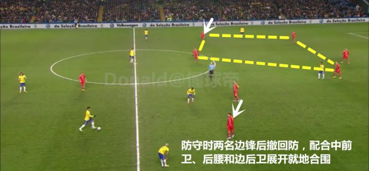 由于中场防守人数增加,两名边路进攻球员拥有了更大的空间,我们时常会看到边后卫直接跨过整个球场找对边边前卫的长传,一旦撤出空当,颇具威胁。