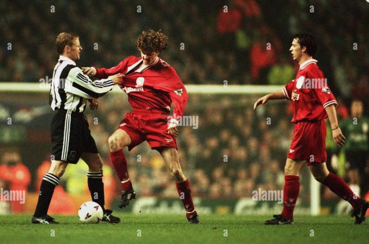 欧锦赛结束后,利物浦队迎来了新的赞助商,起源于英国的品牌reebok。而麦克马纳曼穿上了锐步的圆领球衣后,给人一种不可思议的感觉,很多人都说麦克马纳曼没有肌肉,皮包骨头,而且速度也不快,但他却是利物浦队当时出场最多的球员,还是英超盘带第一人,96-97赛季,他出场37场,打入7球。除此之外,他也是1998年世预赛英格兰队的主力,英格兰在最后一轮逼平意大利,最终1分优势力压意大利获得小组第一出线。