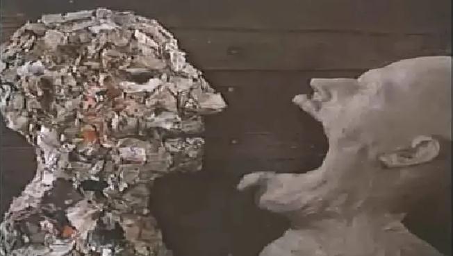 第一部分:三个勉强可以称为人的怪物,分别由瓜果蔬菜、厨房刀具、书房文具组成,他们彼此吞噬,而后吐出,碎渣重组成形。如是往复,咀嚼撕咬,化整为零,化零为整,却渐渐趋同,分不出彼此;第二部分:由粘土组成的一对男女,他们眉目传情,无语交流,进而拥吻缠绵,难分难解谁知欢愉过后,情感却迅速冷淡下来,随之彼此憎恨,伤害,情感来去匆匆,无法永驻;第三部分:两个黏土样的脑袋,他们同时吐出舌头,所呈现的物品琴瑟合璧,心意互通,但是总会有出错的时候,一个小误会如同一颗肮脏罪恶的种子,在彼此的心间和脑海恣意疯长,摧毁彼此……