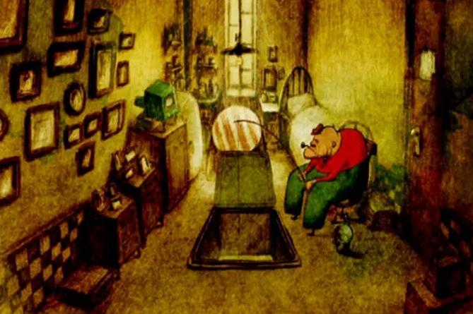 恍如世界末日一般,洪水席卷地球,世界变成一片汪洋,空旷而孤寂。一位老人孤独地生活在这个世上,或凭栏远眺,或看看电视消磨时光,几无可以交流之人。水位不断上涨,老人只能不断加盖房子,宛如摞积木一般,房子有如矗立在深海中的巨塔。在搬运家具时,老人的烟斗不慎掉落水中,更顺着层与层之间的通道掉落下去。烟斗有着他和老伴共同的回忆,老人决心潜水取回烟斗,但是这一举动似乎打开了记忆的闸门,往日的回忆不断涌现。老人无法自已,一层层向下沉去,寻找那些早已沉在海底的珍贵记忆……