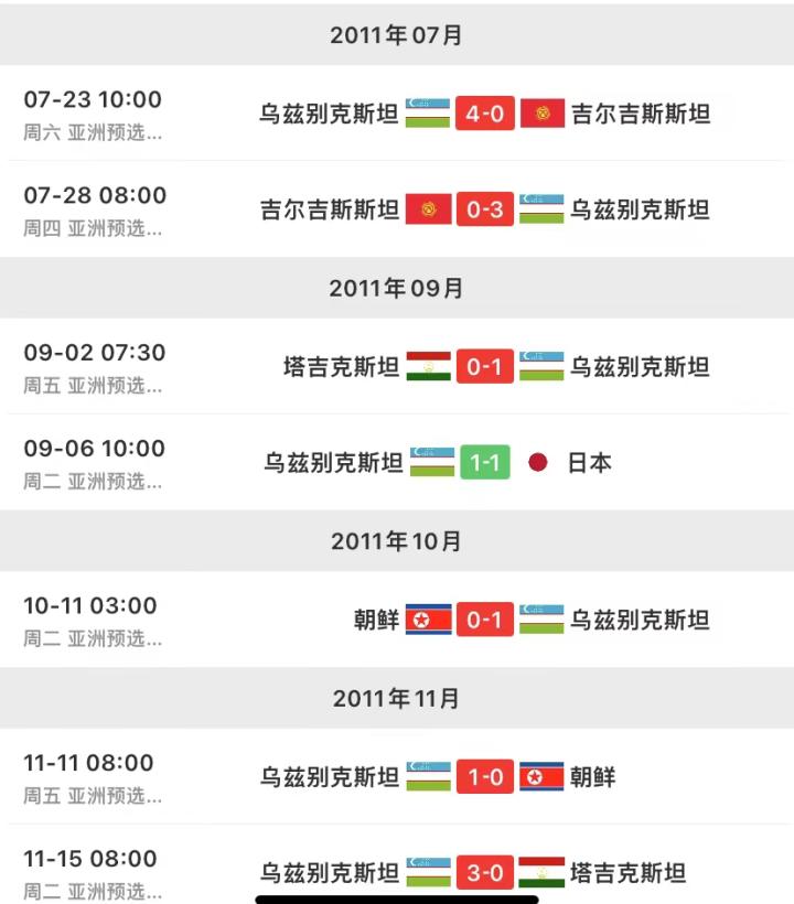 乌兹别克国家队在2011年下半年取得了骄人的战绩