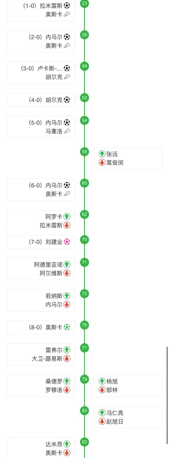 而国足,在下半年的比赛中,虽然前三场比赛三连胜,但对手仅仅是老挝和新加坡,在昆明对阵老挝在32分钟时0:2落后,下半场最终比分定格在了国足7:2,客场适应了对手的国足6:1双杀对手,随后对阵新加坡,又是先丢一球,随后2:1逆转。再之后,就是一波三连败,客场1:2不敌约旦,主客场被伊拉克两个1:0双杀,第二回合比赛还是92分钟被对手绝杀,伊拉克队长尤尼斯-马哈茂德,这个名字,连同染红的张琳芃,成为了中国球迷又一个噩梦。