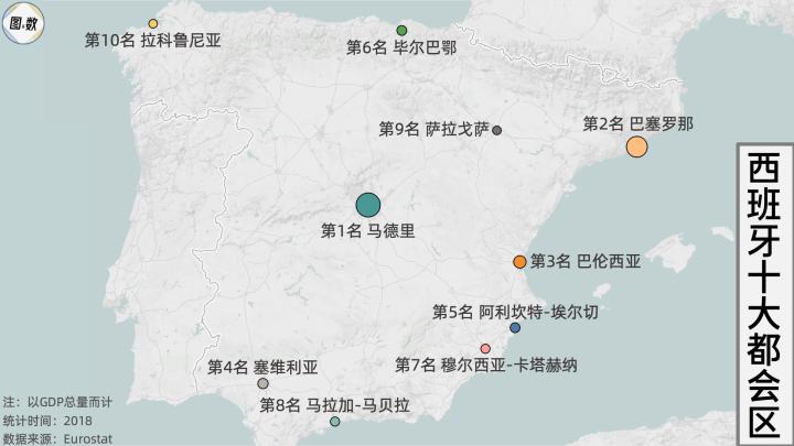 马德里都会区目前有600多万人,2018年的GDP总量超过2311亿欧元,是西班牙第一都会区,并与巴塞罗那一同成为西班牙经济的双核发动机,而且与其他大多位于沿海地区的都会区不同,位于国土中央的马德里还需要带动西班牙广大的内陆地区。