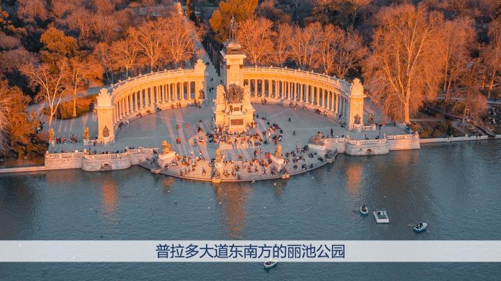 马德里南北轴线的北端有四大楼和欧洲门等现代建筑,而南端的普拉多大道则与丽池公园一同成为西班牙今年最新申请成功的世界文化遗产。