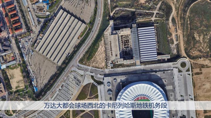 因为地处城市郊区,地价会便宜一些,所以马竞的万达大都会球场西北侧就是一个占地面积很大的地铁机务段——卡尼列哈斯机务段,这是马德里地铁最大的存放、保养和检修基地。