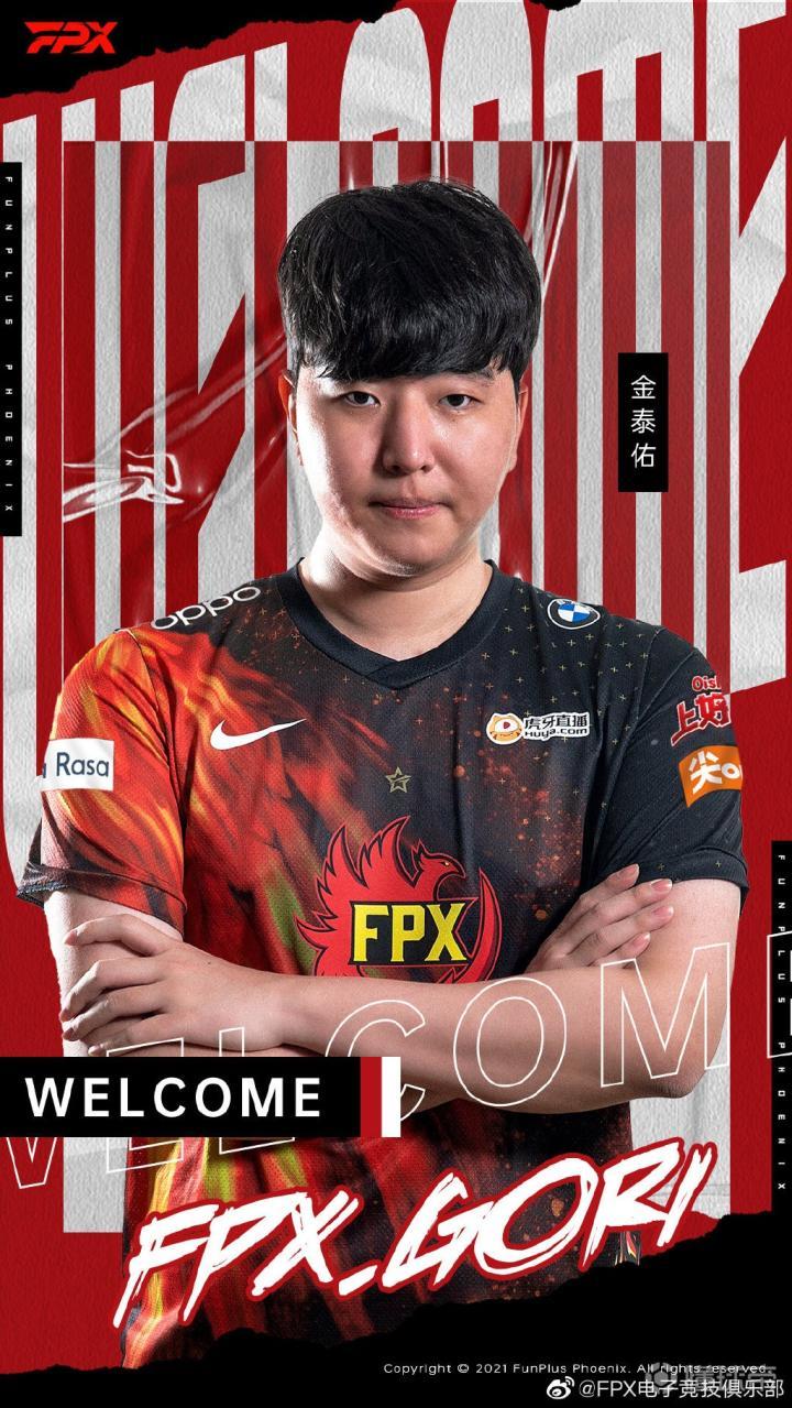 FPX官宣:原LCK赛区NS战队中单金泰佑Gori正式加入