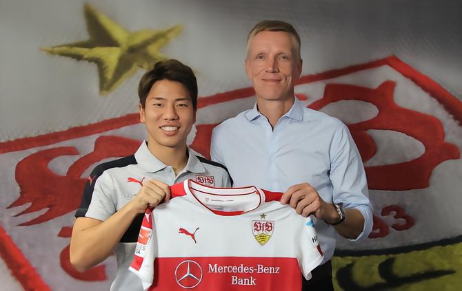 德甲绝对算是浅野拓磨的伤心地。2016年夏天,阿森纳以400万欧元从广岛三箭签下了年仅21岁、在2015年底世俱杯表现出色的浅野拓磨(4场比赛贡献1球1助攻,三四名决赛贡献助攻帮助球队绝杀广州恒大),然后直接租借到了当时还在德乙的斯图加特。当时只有21岁的浅野拓磨在斯图加特的首个赛季出场26次有4球4助攻的数据,表现算是可圈可点,斯图加特也升入德甲。